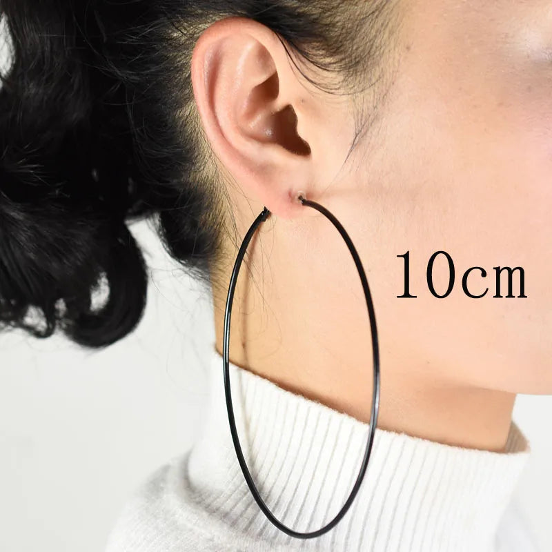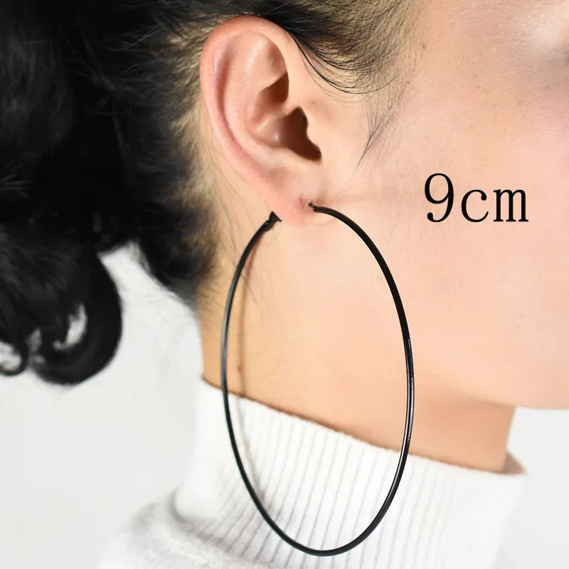 Clip on the ear without pierced Hoop earrings for women Big circle Black Round Personality punk 2021 Fashion Jewelry Accessories