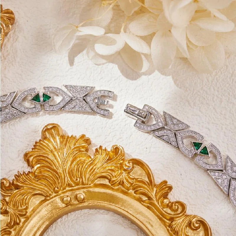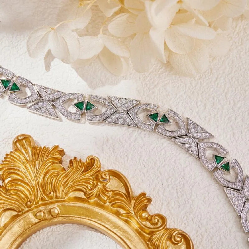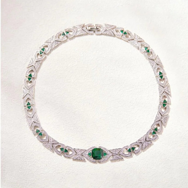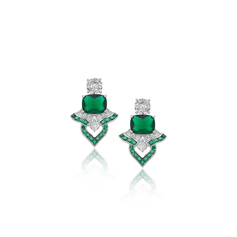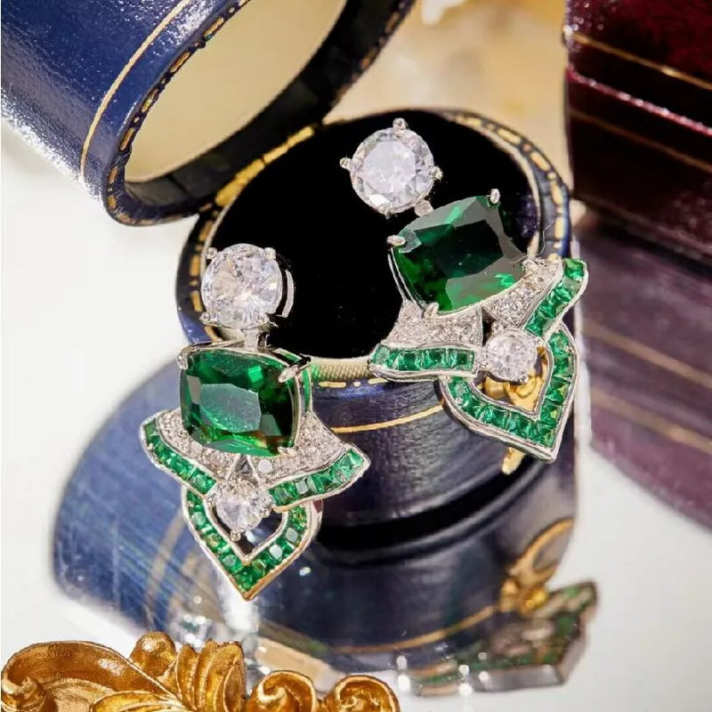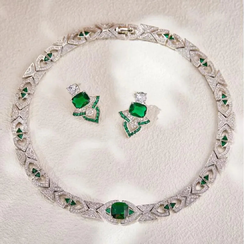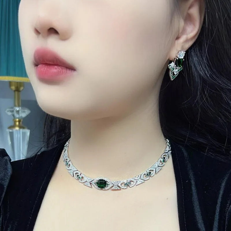 Designer Collection Stud Earrings Necklace Women Lady Inlay Cubic Zircon Plated Gold Color Synthetic Emerald High-end Jewellery