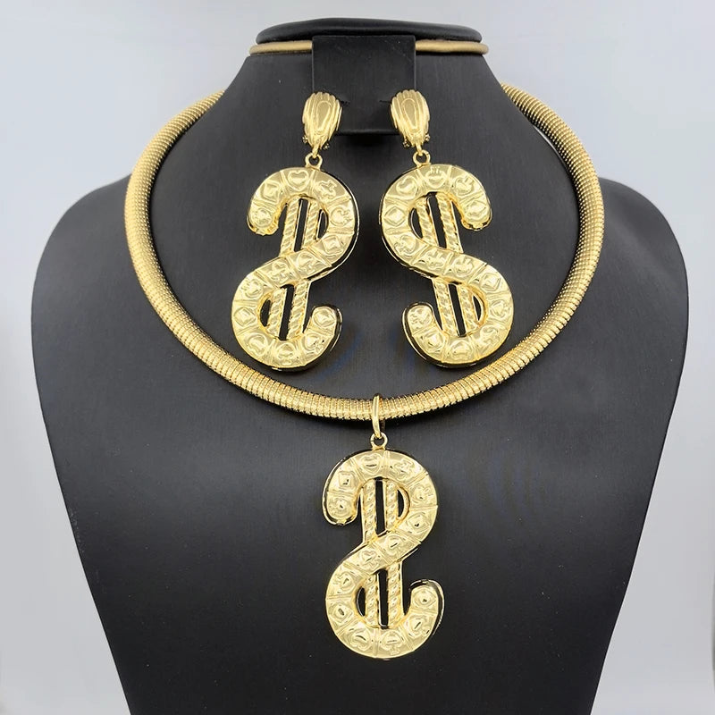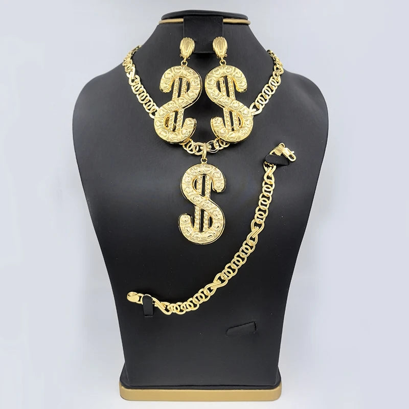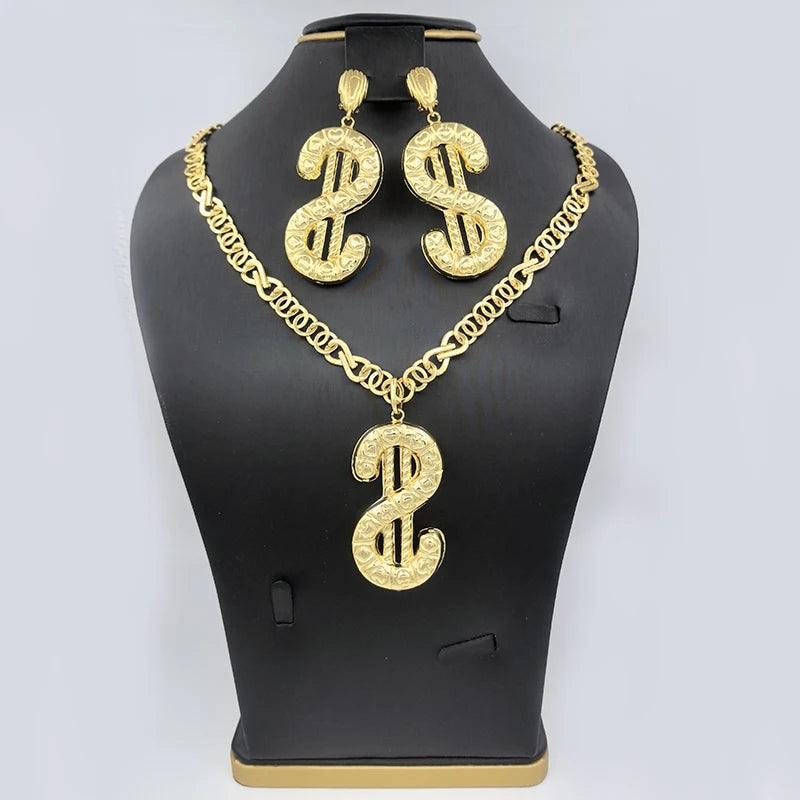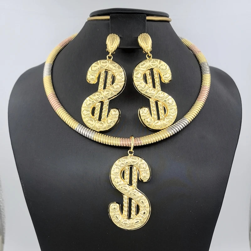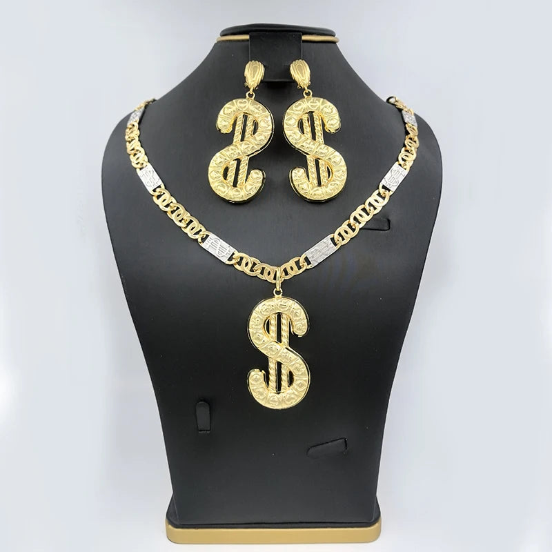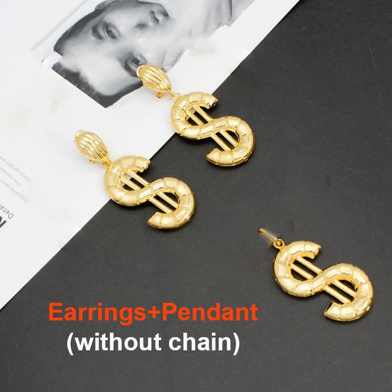 Dubai Necklace Earrings For Women Dollar Euro Pendant Brazilian Jewelry Set Wedding Gift Trendy Party Engagement Jewellery
