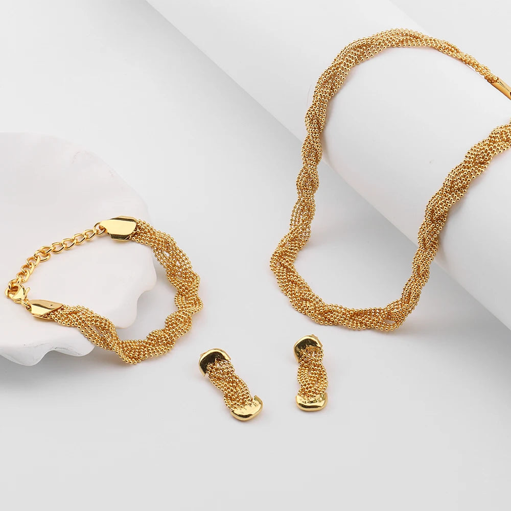 Gold Color Hollow Earrings Necklace Set Fashion Women Dubai Africa Luxury Punk Jewellery Choker Necklace Wholesale Accessaries
